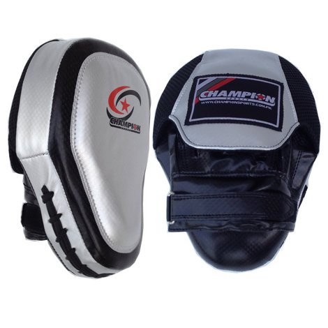 focus pad made of shiny synthetic leather , front silver panel has GEL padding ,filled with multiple layers of thicker padding, these focus pads are fully able to obsorb every type of stronger hits and shocks, they are very light and have great hand grips