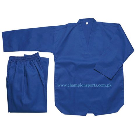 taekwondo uniforms made of finest 7. ounces per square meter Medium Weight 45% Polyester and 55% Cotton blend fabric for easy care. This White Tae Kwon Do Medium Weight Uniform has a full cut design for perfect fit with 3 piece Tae Kwon Do style gusset in pants and reinforced double stitched flat seams for extra strength. The uniform has an elastic waist with drawstring tie and includes top, pants, and a white belt.
